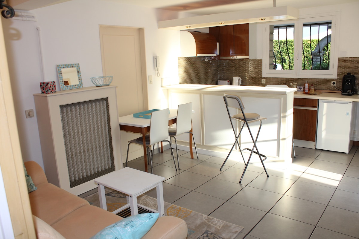 Détendez-vous dans ce logement, accolé à notre maison, idéalement situé dans un village de charme, comprenant une chambre, une pièce de vie avec coin repas (plaque vitrocéramique un feu portable) et une salle d'eau. Pour une pause le temps d'un week-end, vos loisirs ou encore pour le travail, ce studio rassemble de nombreux atouts : le calme de la forêt de Chantilly, le confort et la proximité des centres d'activités tels que Paris, l'aéroport de Roissy-CDG, le stade de France, le parc Astérix.