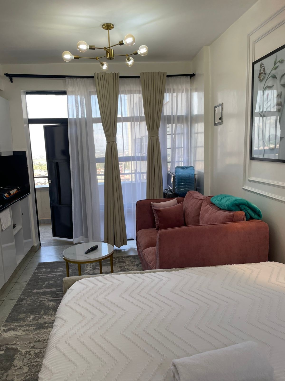 Centrally located in Westlands, the “City within the City” and only 25 minutes from the airport; this 1-BR apartment is surrounded by top hotels Kempinski, The Marriot and restaurants - for all your culinary needs. Luxuriously furnished unit, in secure building, with all amenities provided including a private balcony to relax and enjoy the panoramic city views . Fully equipped gym, heated pool, barbeque area on the rooftop with ample space for relaxation, parties, and private meetings.