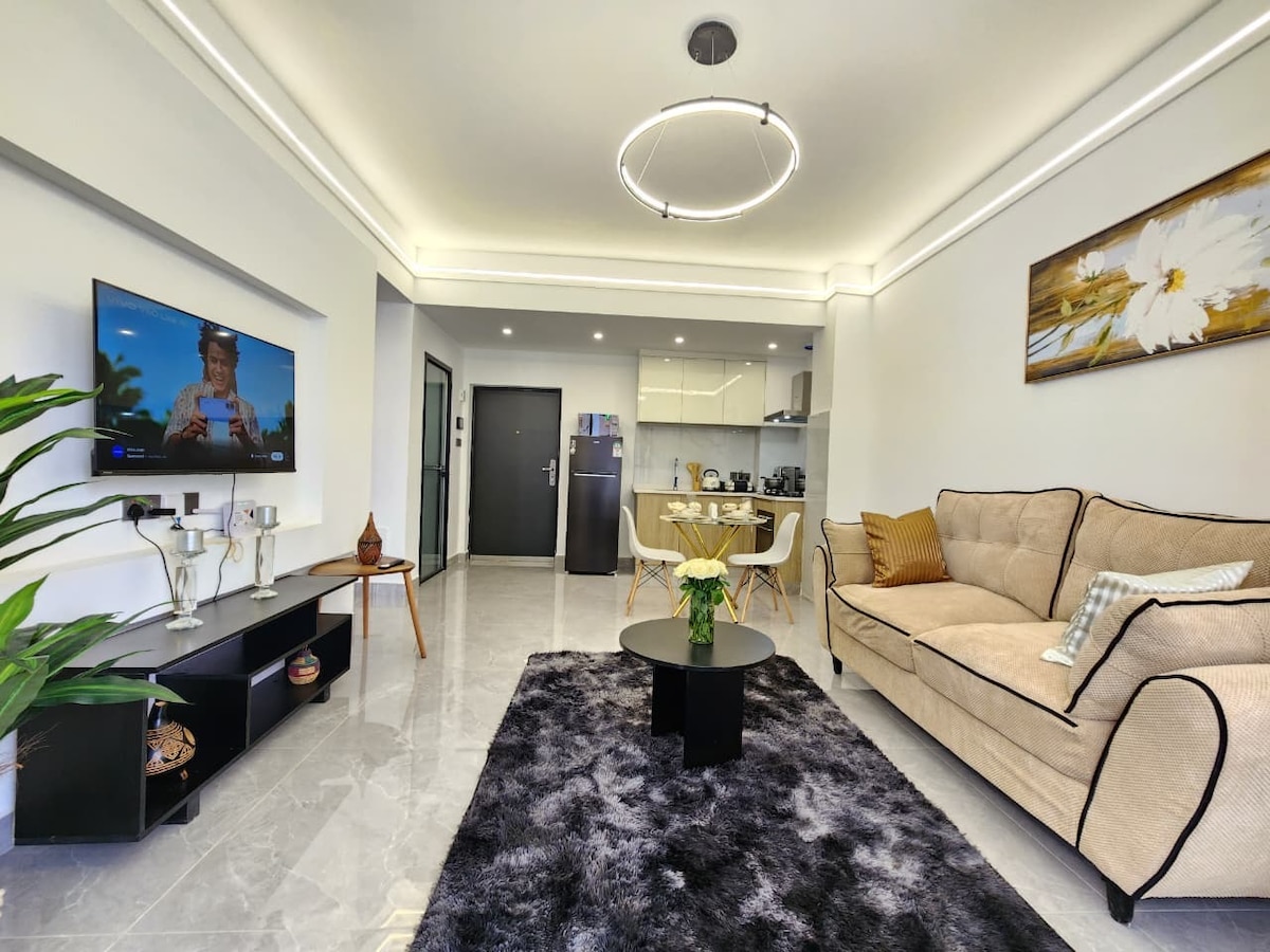 This cozy and modern one bedroom apartment is designed for comfort and practicality, ideal for both short and long stays. Each room features a fully-equiped mordern kitchen with premium appliances, a spacious living area with dining space and a cozy en-suite bedroom with an ample wardrobe storage.