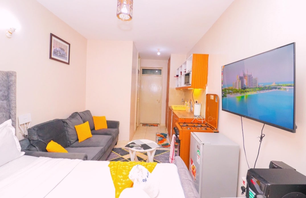 Welcome to Deliza Haven – your stylish 1-bedroom escape along Kiambu Road! 🌿✨ Relax with a rooftop pool, enjoy movie nights on a 43’’ Smart TV + Netflix, and stay connected on fast 30Mbps WiFi – perfect for both work and leisure. A fully equipped kitchen, cozy living space, and peaceful vibe make this the ideal stay for business travelers, couples, and long-term guests seeking comfort and convenience just minutes from Nairobi. 🌟 Enjoy 10% off weekly stays & 35% off monthly bookings.