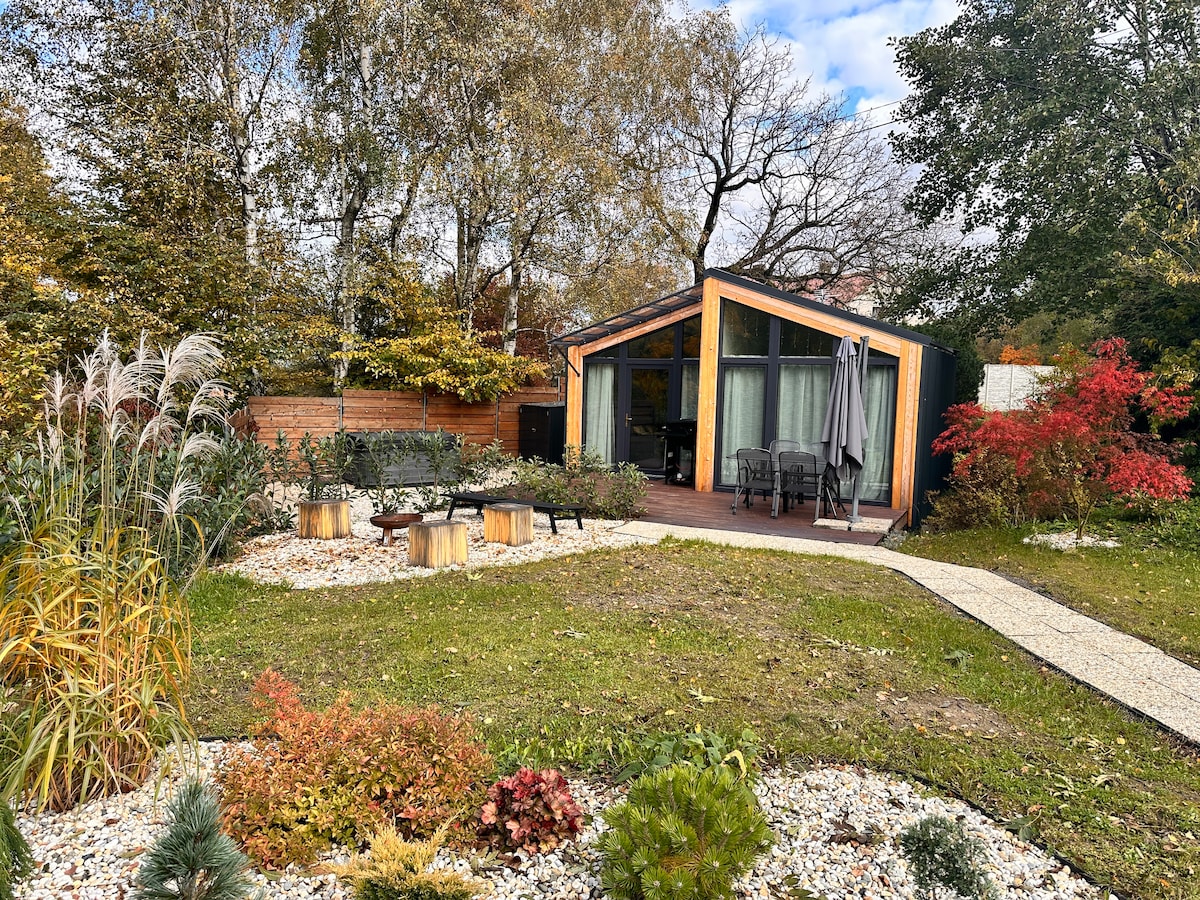 Postavené vlastnými rukami od základov až po ručne vyrobený nábytok interiéru. Upravené okolie domčeka pre Vaše pohodlie: terasa s lehátkami a vaničkami na kúpanie v lete, kaďa s vyhrievanou vodou na jarné a jesenné dni, vonkajšie posedenie na čiastočne krytej terase vedľa malého rybníka, priestor na grilovanie či opekanie. A všade navôkol vysadená zeleň. Záležalo mi na tom, aby hostia zažili kvalitu a komfort na pohľad aj na vlastnej koži.