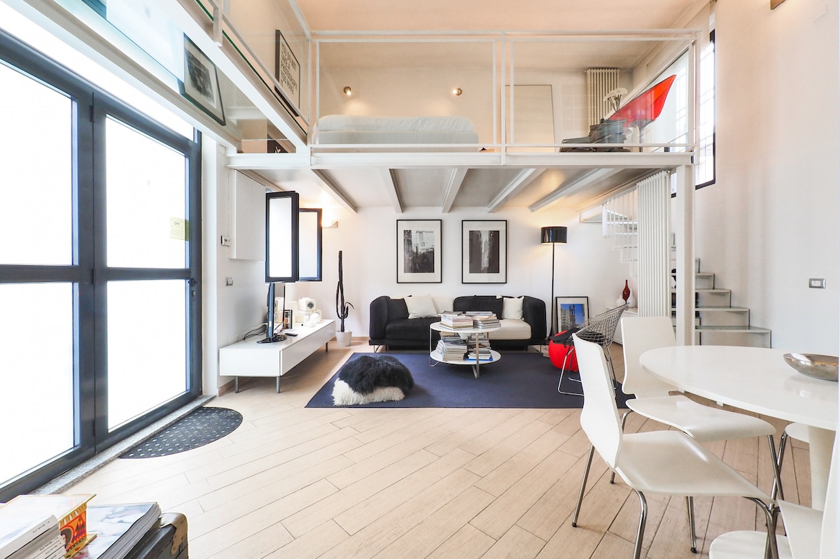 Loft in central area with parking. Living room with dining area, small kitchen, bathroom with shower, sleeping area on the mezzanine. Wifi, air conditioning, washing machine, dishwasher.