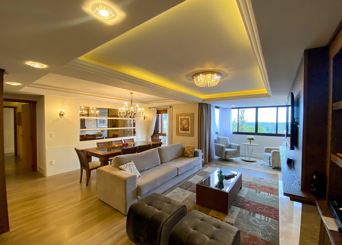 Este incrível apartamento de altíssimo padrão foi totalmente reformulado! Oferece 180m2 e elegância em cada detalhe, amplas janelas com vista panorâmica exclusiva do Vale do Quilombo, Smart TV de 70" na sala de estar e 43" em dois dormitórios! Além disso, fica apenas 2 quadras da Rua Coberta! Por ser localizado no centro, você poderá fazer muitas coisas a pé, tendo a comodidade de deixar o carro e contemplar com tranquilidade tudo que Gramado tem para oferecer!