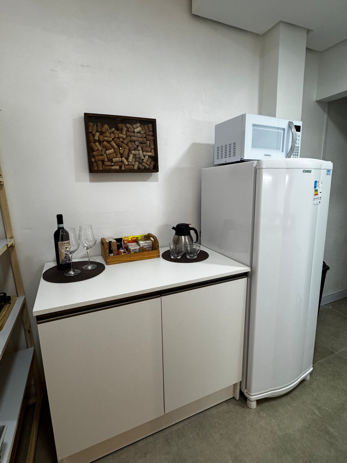 Localizado no centro de Gramado, na rua Tia Rita, 203. Loft Gramado oferece: Cozinha com utensílios domésticos. Roupa de cama com cobertores e travesseiros. TOALHAS NÃO. Com internet e elevador. 1 suite (quarto com cama de casal (1,58cm), 1 sofá-cama. Espaço que serve como um quarto com uma cama box solteiro. Split no quarto e na sala. 2 vagas de garagem. Ferro elétrico, secador de cabelo e purificador água. Obs: a zeladora faz locação de toalhas no particular. Comporta 4 pessoas.
