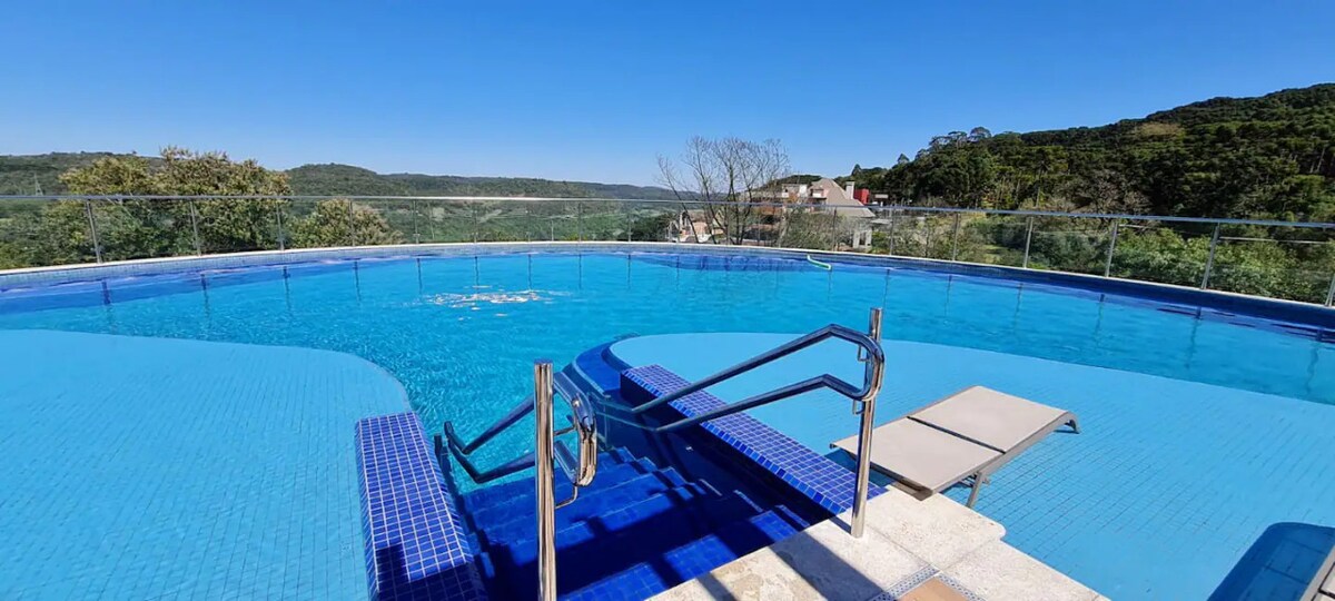 🍁Divirta-se na Serra Gaúcha e hospede-se neste flat sofisticado em Canela com vista espetacular da Catedral de Pedra. Cozinha equipada, lareira aconchegante e quarto iluminado naturalmente. Acomoda até 4 pessoas + 1 criança (até 2 anos). Wi-Fi, Smart TV e ar-condicionado. Prédio com piscina aquecida, sauna, playground e academia. A apenas 5 min de restaurantes, cafés e atrações. Perfeito para casais e famílias que buscam conforto e charme 🍂