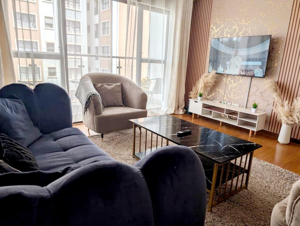Shamari's Apartment. Relax with the whole family at this peaceful place to stay. Two bedroom fully Furnished apartment in Ruaka. 5 minutes walk to Two Rivers and 10 minutes drive to UN Offices. 10 minutes walk to Rosslyn Riviera Mall. Amenities WiFi Washing Machine Fully equipped kitchen Lift Roof Top hangout area Master Bedroom Ensuite Free Parking in the premise