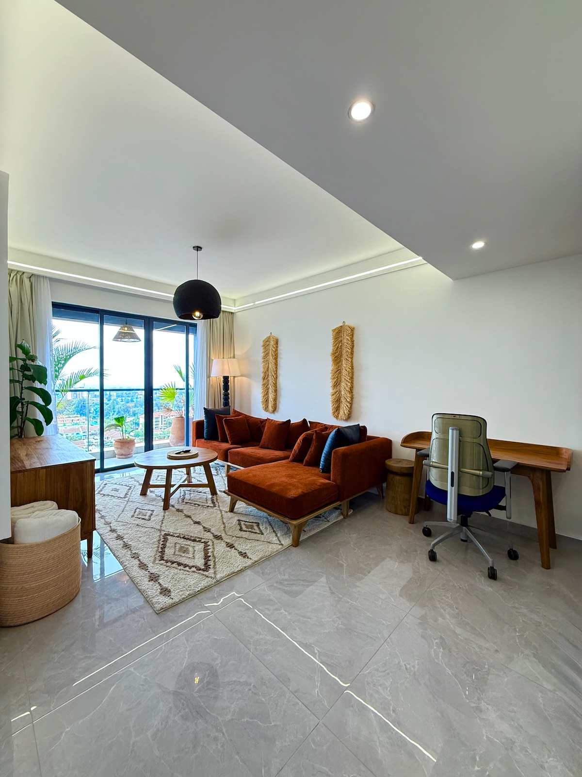 Le' Mac is an iconic sculpting the SKY Apartment. Its 25 floors ,dome shaped ,white and blue in color and very visible from far. Its about 10 minutes away from the city center. We are in an affluent area of Nairobi on Waiyaki way. Near ABC place, Sarit centre and West gate ,this is all in Westlands. It also gives a good glimpse of Nairobi city and a very good view of Nairobi National Park. Guests can access the apartment anytime as its now self check in enhanced. Key codes details are given