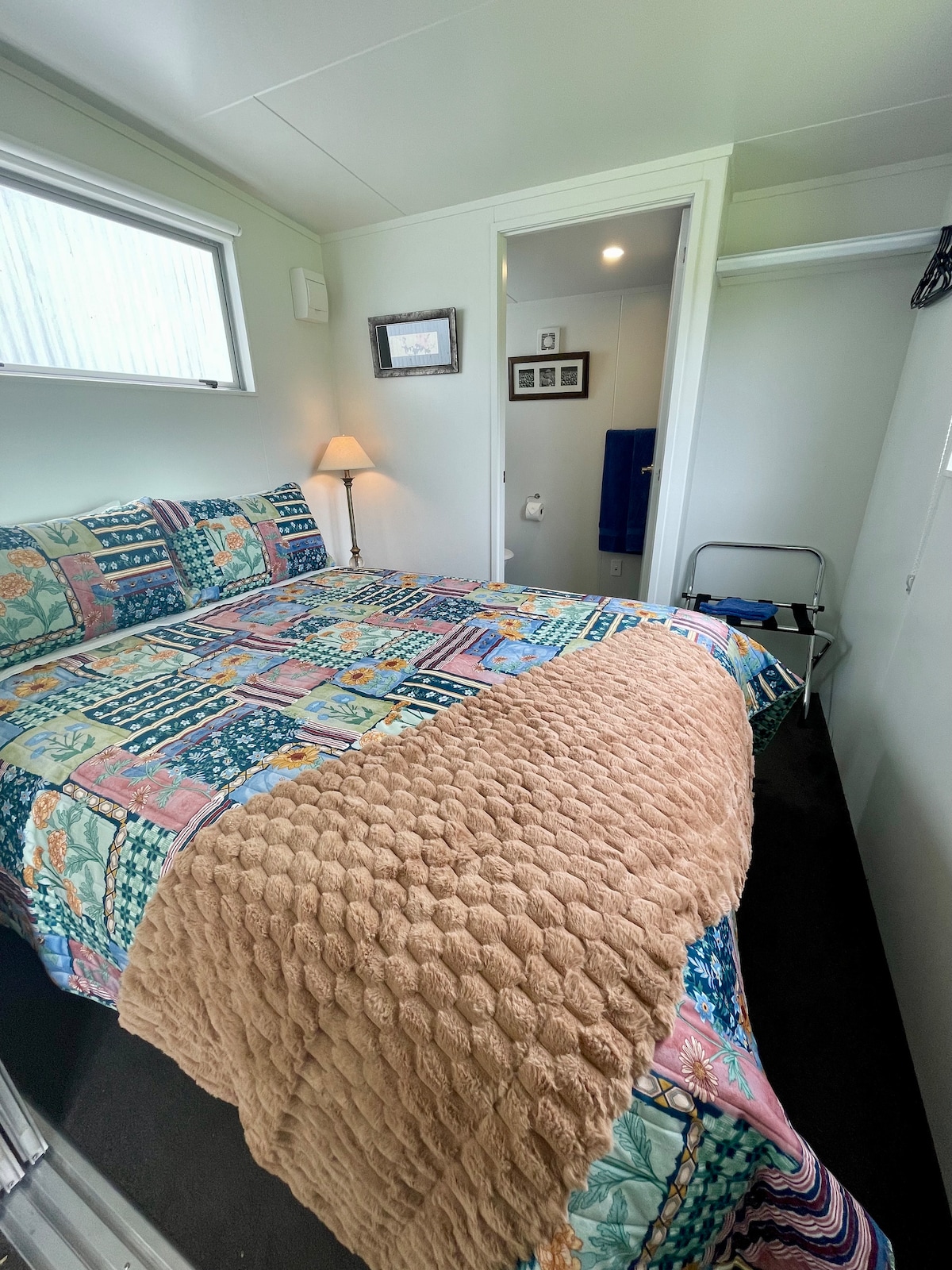 Jailhouse Ridge is a fully self-contained unit with its own private access, ideal for couples. It is surrounded with 7 acres of gardens, ponds & paddocks. Your own private spa awaits you on the deck & is serviced daily. With a Queen bed, fully equipped kitchen, en-suite & log fire, it has everything you need for a fantastic stay. The mezzanine floor, accessed by a steep staircase, has a sofa, 42" TV , Freeview, DVD, WIFI. An extra 32" TV with Chrome-cast is downstairs.