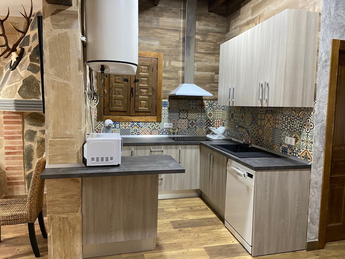 Coquette_ Contempla montañas, rio y el puente romano desde la cama del alojamiento , desde la bañera hidromasaje o sentado al sol de nuestro balcón. Ubicado en un lugar privilegiado, alojamiento singular ya que la mitad del mismo está enclavado en la montaña de nuestro pintoresco pueblo. Apartamento de 28m en concepto abierto. Dispone de secador y plancha de pelo así como de amenities. Plancha ropa vapor. Cocina equipada con microondas, nevera, vitro, cafetera nespresso .