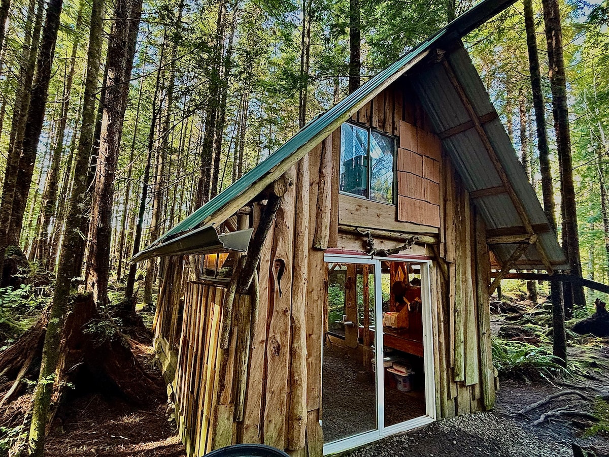A rustic camping den in the woods—with a loft, kitchen w/ propane stove, and private creek access. Just 3 miles from Ruby Beach (south of Forks, Wa). A 2 mile private drive through Olympic Natl Park, some cut land, a 1 minute forest walk and it’s all yours! Huge skylights and windows, and not fully sealed walls allow for maximum forest feel. No electric or running water. Pack out garbage+toilet bag. Please read more below