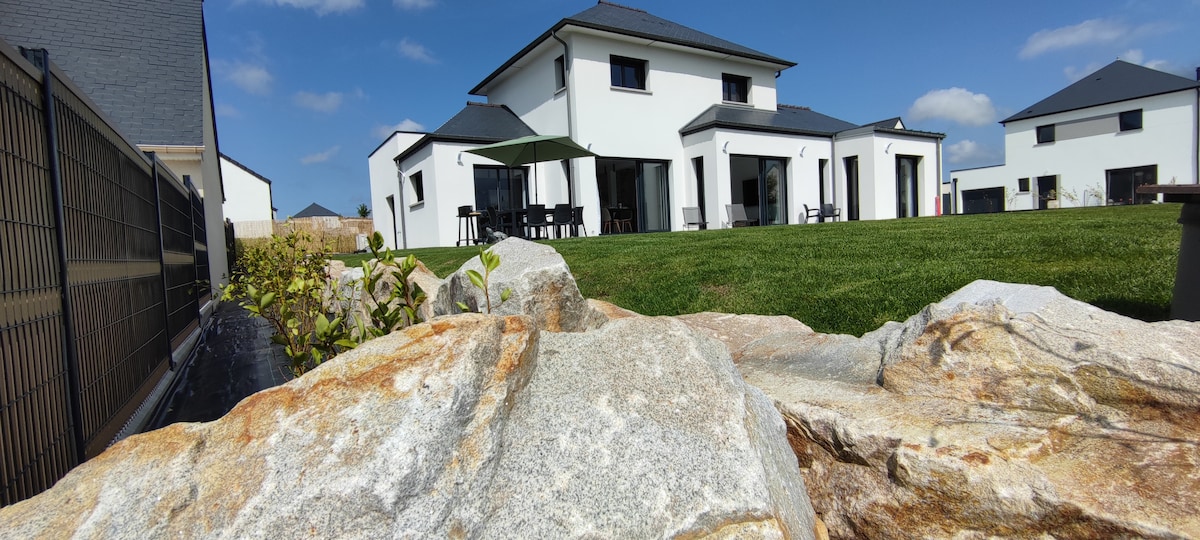 profitez d'un séjour inoubliable entre la côte de Penthièvre et la côte d'émeraude . maison élégante, lumineuse, spacieuse aux prestations soignées et calme sont au rdv. idéalement située à seulement 8.6 km de nos magnifique plages, nombreux Sites touristiques et activités à découvrir. commodités à seulement 5 minutes en voiture . location à la semaine du samedi au samedi en juillet/août uniquement. linge de lit est lit fait sont compris. le linge de toilette / cuisine ne sont pas fournis.