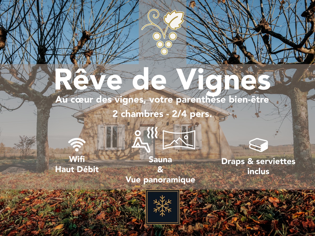 Évadez-vous à **Rêve de Vignes** ! Nichée au cœur des vignes, cette belle maison en pierre vous offre calme absolu et vues panoramiques. Profitez de deux chambres confortables, d’un salon baigné de lumière avec baie vitrée, d’une terrasse ensoleillée avec salon de jardin et barbecue et d’un sauna extérieur donnant directement sur les vignes. Détente et déconnexion garanties ! Parking gratuit, climatisation, Internet, Netflix : tout est pensé pour un séjour unique et mémorable.