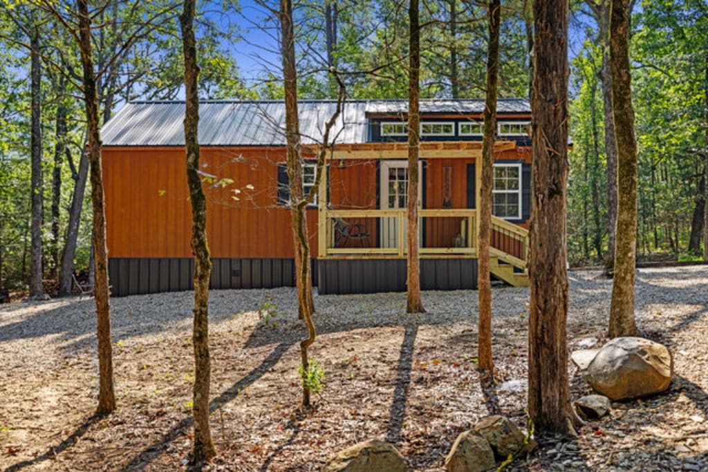 "On the Rocks" is a tiny cabin conveniently located on the road going into the park at the North end of Pine Creek Lake. Less than one 1/4 mile to Little River Park and the lake. Perfect for going fishing, boating, swimming, kayaking or just taking a stroll at the lake. With all the comforts of home it is ideal for fisherman, a couples getaway or a small family. The kitchen has a fridge, microwave and gas cookstove.