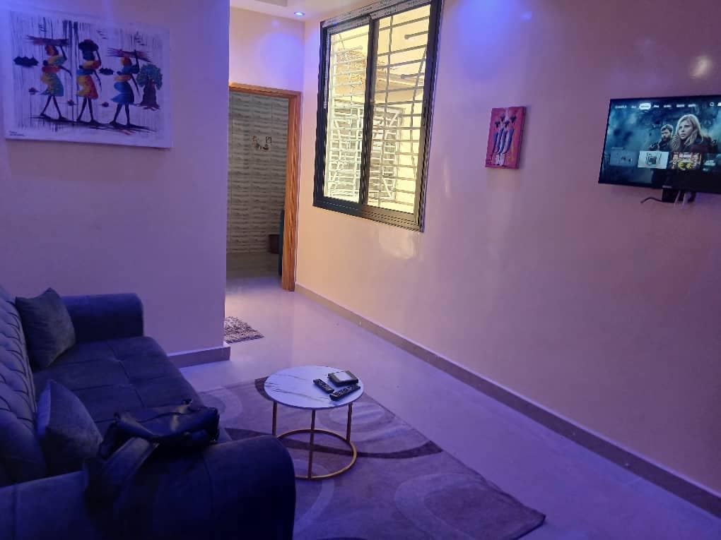 Cozy studio situé à 25mn de Dakar à la cité Abdoul Aziz Dabakh à keur Ndiaye Lo, sur la route de sangalkam. Un appartement d’une grande et spacieuse chambre, salon, cuisine américaine et une salle de bain. La cuisine est équipée et fonctionnelle, avec des rangements et des couverts à votre disposition. Le logement se trouve au 2ème niveau d’un immeuble de 4 étages sans ascenseurs. Des draps et des serviettes propres sont à votre disposition. Merci de laisser les lieux propres au départ.