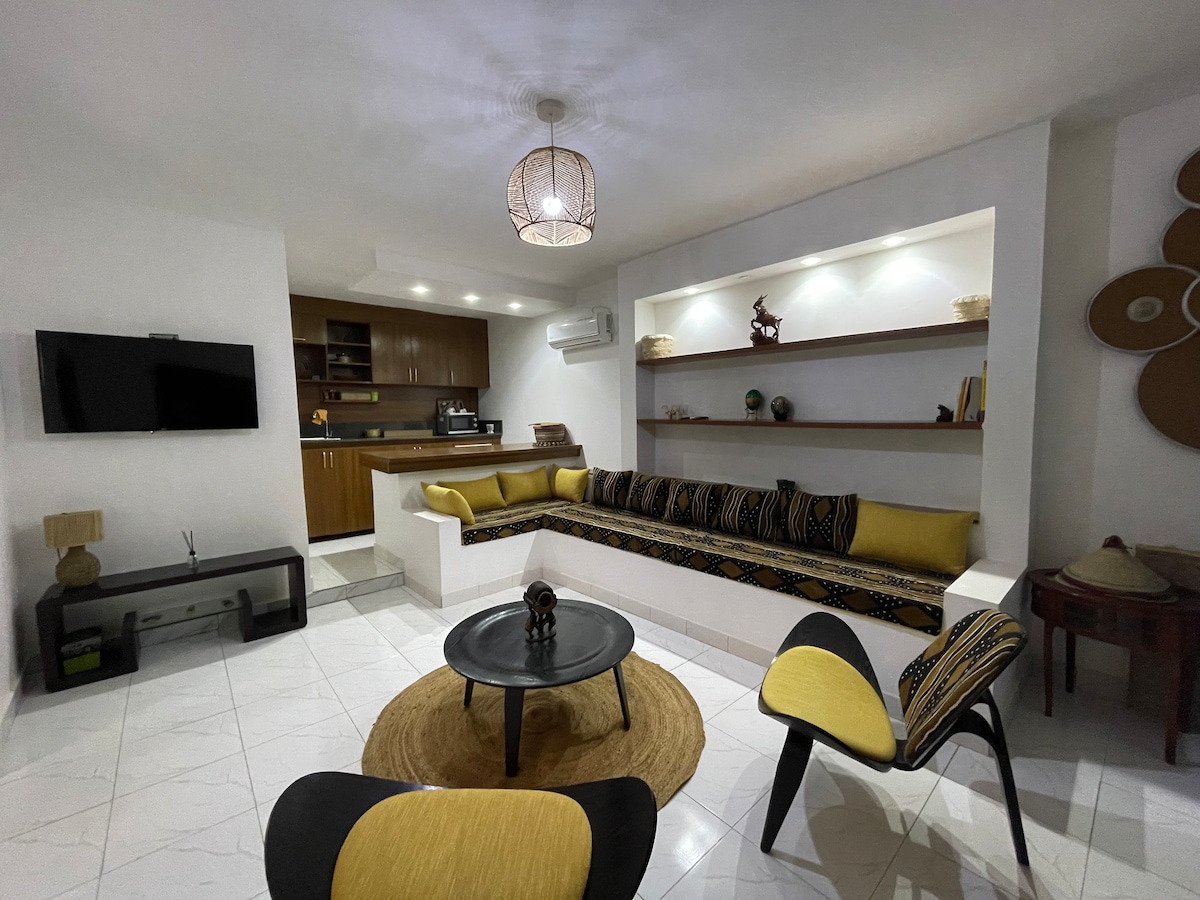 Loft de haut standing indépendant dans propriété privée en bord de mer comprenant un espace chambre, un salon une salle de bain et une grande terrasse avec vue sur mer. Wifi gratuit et petit déjeuner inclus. Le logement se situe à 2 minutes à pied de la plage de Toubab Dialaw et à 30 minutes en voiture de l’aéroport Blaise Diagne.