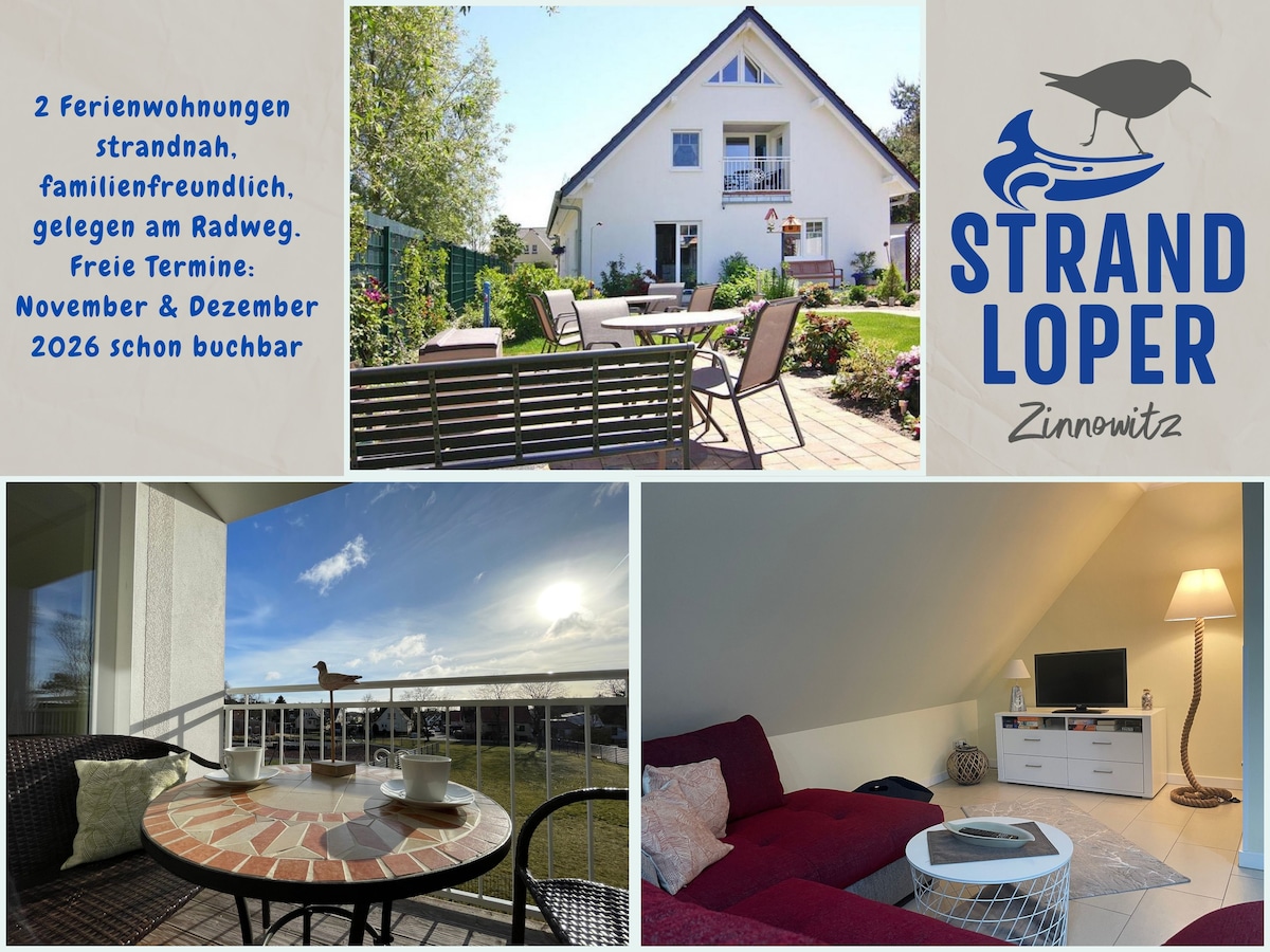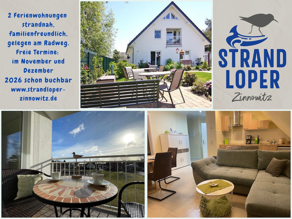 Sie möchten ganz nah am Strand und trotzdem ruhig wohnen? Ein überdachter Balkon und ein schöner Platz im Garten, das wäre Ihr Traum? Voilà willkommen im Ferienhaus Strandloper. Die 3-Raum-Wohnung unserer Ferienwohnungen ist mit allem Komfort eingerichtet und verfügt über einen offenen Wohn-Essbereich, 2 Schlafzimmer, Fußbodenheizung, Full HD TV mit Internetzugang, DAB+ und Internetradio, WLAN, Waschmaschine, Parkplatz, Balkon, Garten mit Grill und das Beste: die Ostsee ist einen Flohsprung weg.