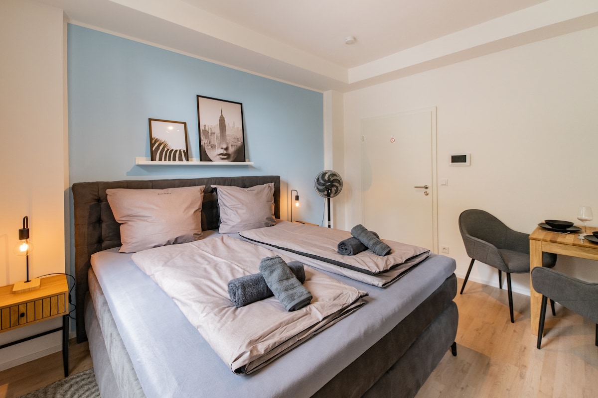 Meine sehr gut ausgestattete Wohnung ist ideal für 2 Personen, falls nötig ist ein weiterer Schlafplatz schnell auf dem ausziehbaren Sofa im Wohnzimmer gerichtet. Auf unserem SMART-TV stellen ich Euch NETFLIX zur Verfügung, für Regentage und eholsame Abende auf dem Sofa :) Ich wohne ruhig, direkt am Wald, wo wunderschöne Wanderwege beginnen. Für Geschäftsreisende ist eine ausreichende Ausstattung vorhanden. 1 Reisekinderbett sowie 1 Hochstuhl stehen für einen kleinen Gast bereit.