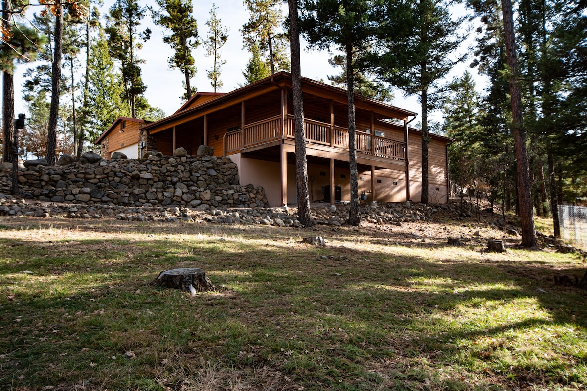 Toasty Timbers is a fully remodeled cabin located just 1 mile from midtown Ruidoso in the Upper Canyon district. This cozy cabin will have you ESCAPING the hustle & bustle as you enjoy the large covered deck in the cool pines w/ a glass of wine or cup of coffee! Enjoy the deer, elk & horses that frequent this cabin!Toasty features beautiful wood accents throughout so you never feel like you've left the outdoors. Enjoy the comforts of home w/ A/C, wifi, fireplace, full kitchen & tv in ea bedroom!