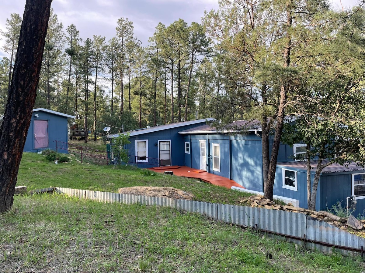 Peaceful mountain cabin located 1 minute away from Midtown Ruidoso's shopping, dining, and activities. This 1942 cabin offers two bedrooms and one bath as well as a spacious outdoor deck, kitchen, and living room. Private but close to town. Elk, deer & wild turkey are abundant on our acre lot and in perfect view from the cabin deck. This quiet oasis offers Wi-Fi, a propane fire pit, electric fireplace as well as coffee, hot chocolate, and oatmeal. You'll feel miles away but still close to town.