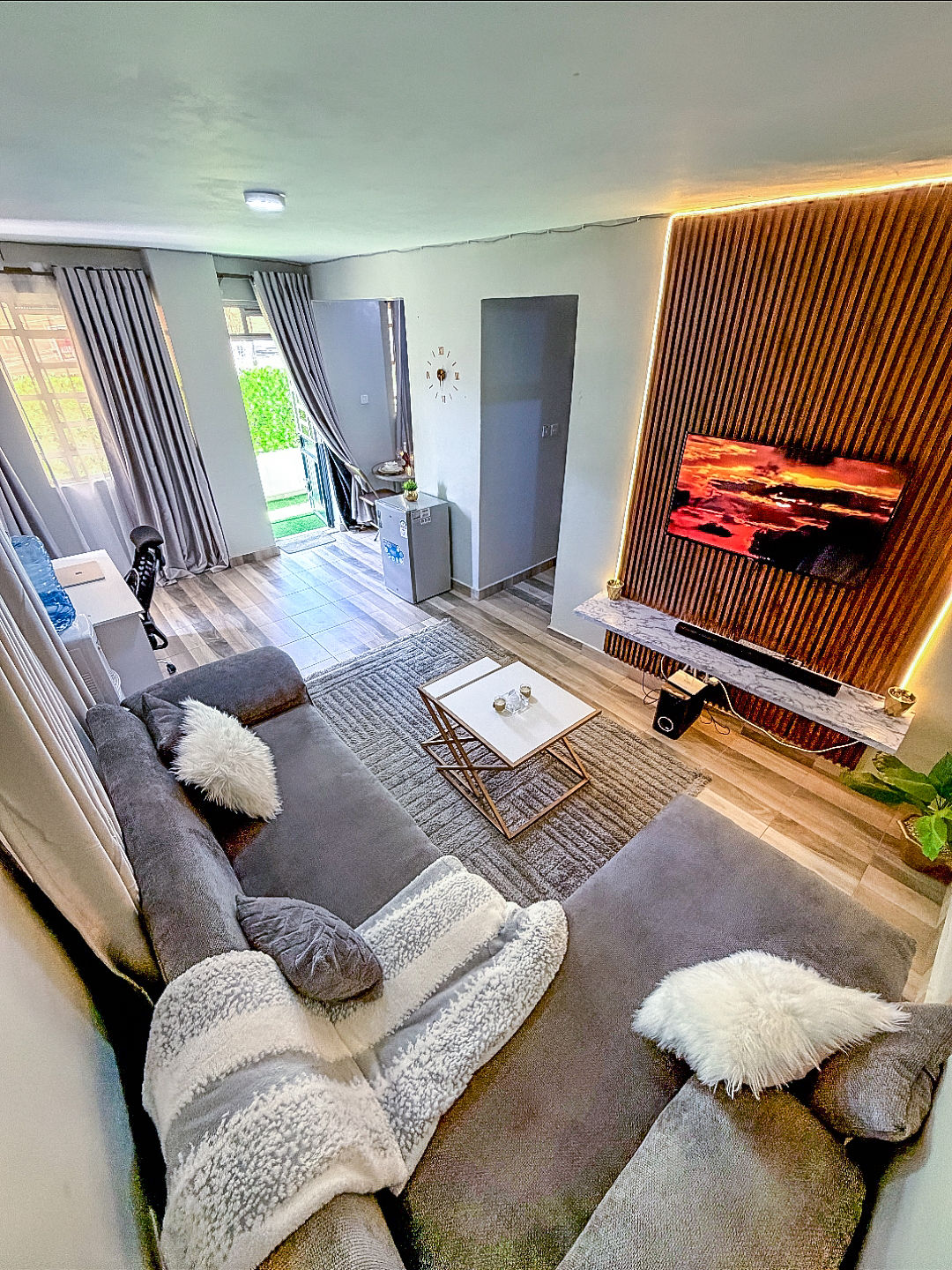 Welcome to the 17th-floor Bohemian Home in Kilimani. Here's what's on the menu: 🌅17th floor breath taking sunset view 🛒🛍️walking distance to Yaya Center 🛋️ private balcony comfort 🏋🏾‍♀️Fully equipped gym 🏌🏽‍♂️⛳️indoor golf 🏓Ping Pong 🚀Fast WIFI 🍿Netflix 💼Working space 🧑🏾‍🍳Turkish restaurant on the premises 💆🏾‍♂️💆‍♀️ Spa & Massage services on the rooftop 🎲 📚 Books and Games 🎨🪴Original art and plants ☕️Coffee maker 🍳fully equipped kitchen 🛌Cozy Chiropedic mattress 🧹Cleaning services at your convenience, & more…
