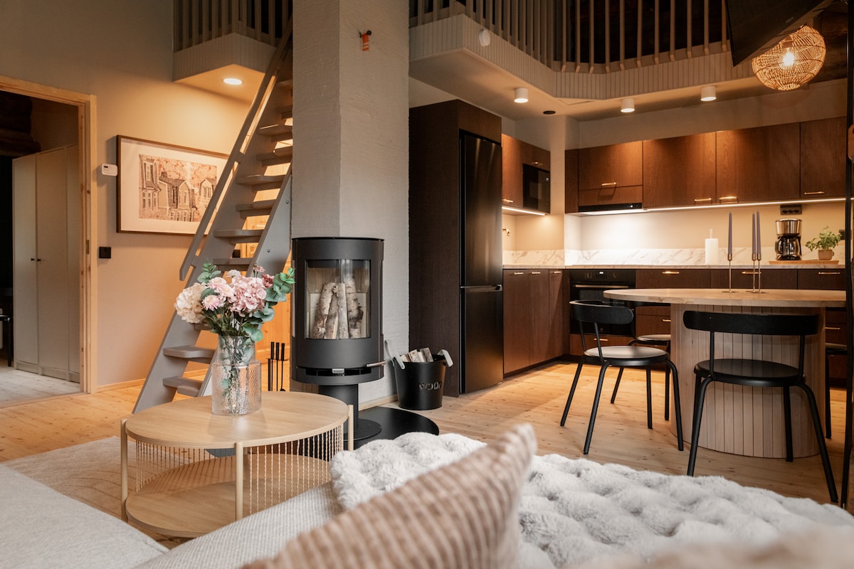 Lumi Chalet on korkeatasoinen ja poikkeuksellisen hyvä kulmahuoneisto aivan Rukan kylän ytimessä, suoraan eturinteiden vieressä. Huoneisto on remontoitu ja sisustettu laadukkaasti syksyllä 2024 – kaikki pinnat, kalusteet ja sängyt ovat uusia. Täältä pääset suoraan rinteisiin, laduille, ravintoloihin, kauppoihin ja palveluihin ilman autoa. Tilava kolmen makuuhuoneen huoneisto tarjoaa upeat näkymät kylälle ja tunturiin – sijainti, jota Rukalla ei voi ylittää.