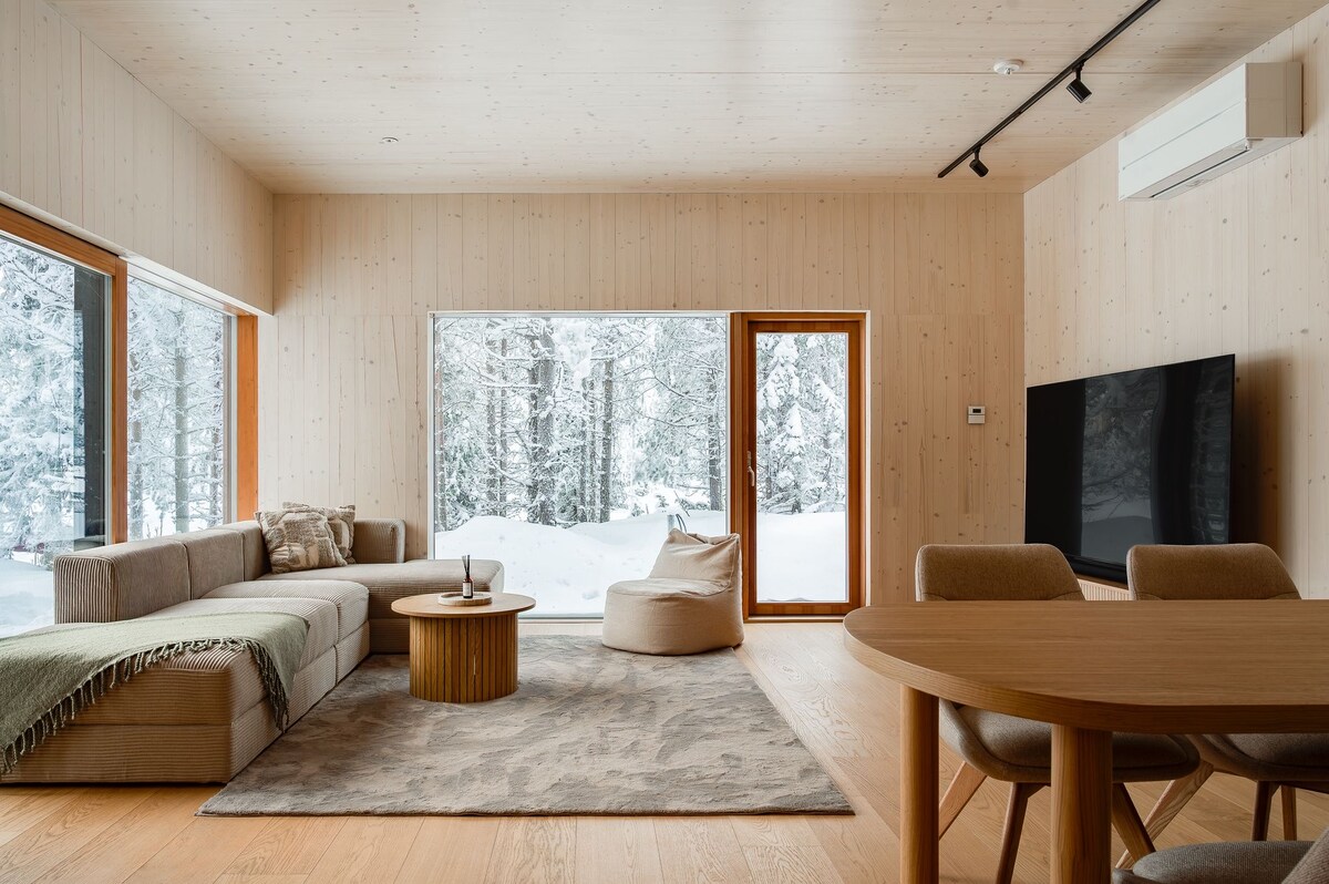 Surrounded by clean and quiet nature, Rokovan Helmi is a perfect hideaway for a group of 2 to 4. The cabin is built in 2019 and is designed by a local company Kuusamo Log Houses. It's a perfect fit for people who love their own peace in a modern environment, yet want all the services to be close at the same time. The cabin is a 6 minute car ride from the nearest East Ruka ski lifts and a 12 minute car ride from Ruka village services. Ski, snowmobil and outdoor trails can be found right nearby.