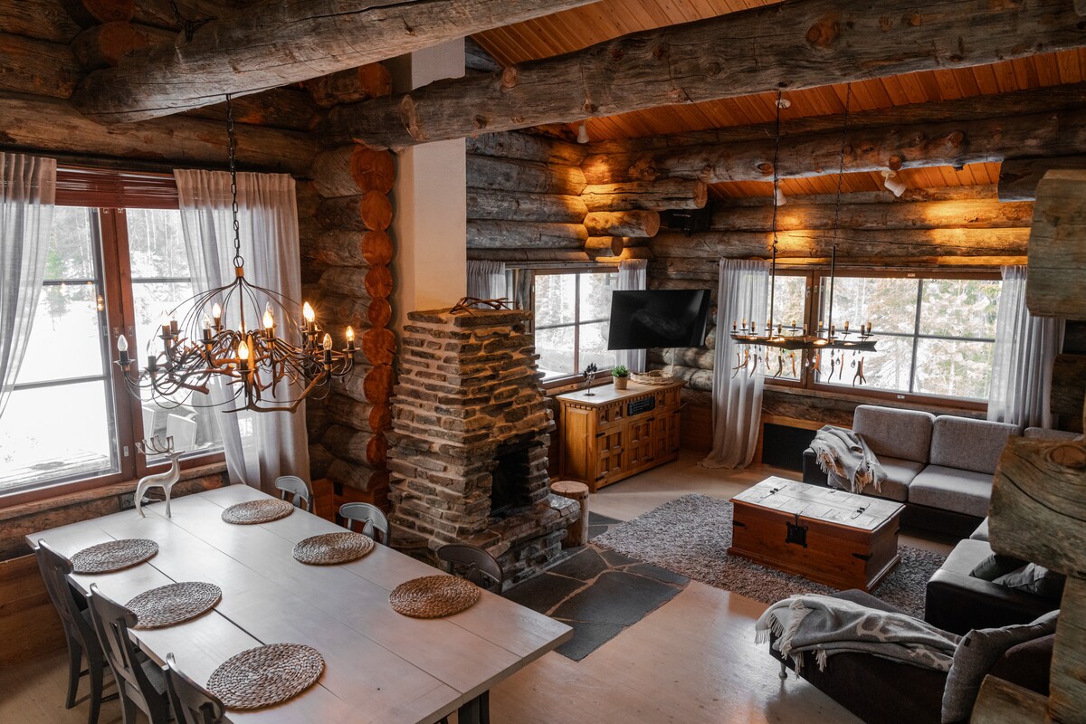 真正的拉普兰小木屋在鲁卡|桑拿|壁炉|雪道50米