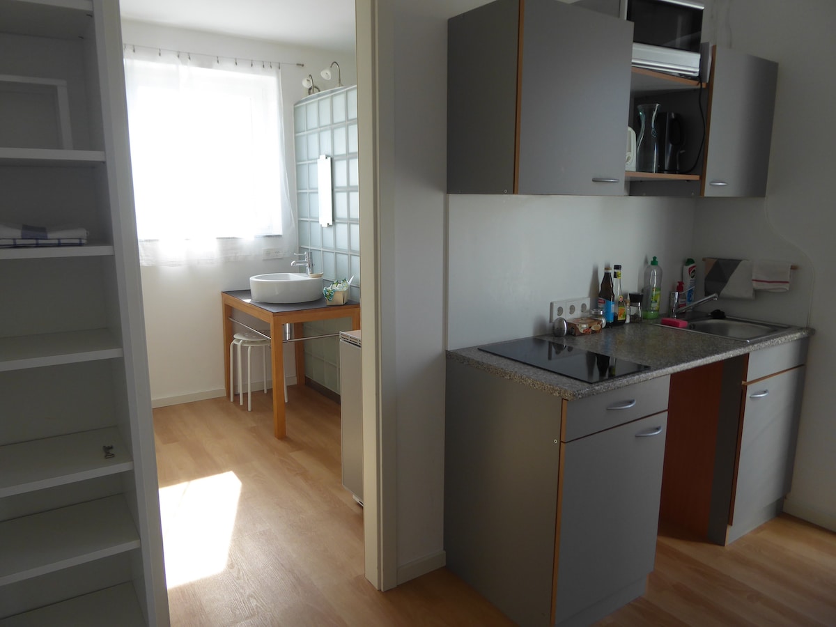 Unsere kleine aber ausgestattete Wohnung liegt am Ortsrand von Oberschopfheim, direkt an den Reben. Ob WanderInnen, HandwerkerInnen, NaturfreundInnen,…. - wir heissen dich herzlich willkommen bei uns. Die Wohnung mit Küchenzeile und Bad gehört dir ganz alleine und ist abschließbar. Den Hauseingang nutzen wir gemeinsam. Auf deiner kleinen Terrasse kannst du den ganzen Tag die Sonne genießen. Im Haus wohnt Josef zusammen mit Hängebauchschwein Wilhelm und unseren Katzen Indie, Hera und Odin🐷 🐈⬛ 🐈
