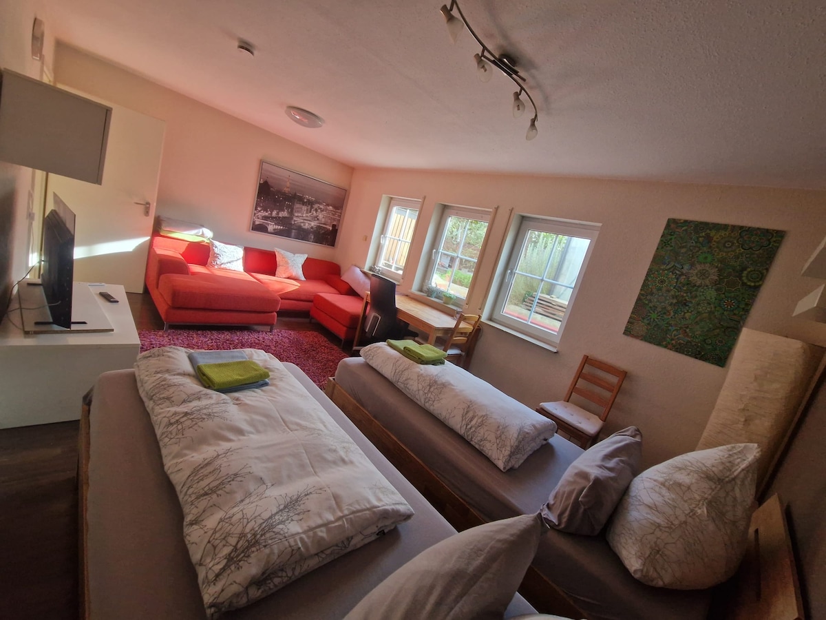 Zentral gelegene Dachgeschosswohnung die 2020 neu renoviert wurde im historischen und barocken Städtchen Ettenheim für einen Kurztrip um den Schwarzwald zu erkunden wunderbar geeignet und liebevoll eingerichtet. Parken sie direkt vor der Haustüre oder sitzen sie abends bei einem Gläschen badischen Wein im Garten der Gastgeber. Die Wohnung liegt im 2. Obergeschoss und ist durch das Treppenhaus mit separatem Eingang erreichbar. Ideal für 2 Erw. + 2 Kinder. Preis berechnet sich nach Personen.