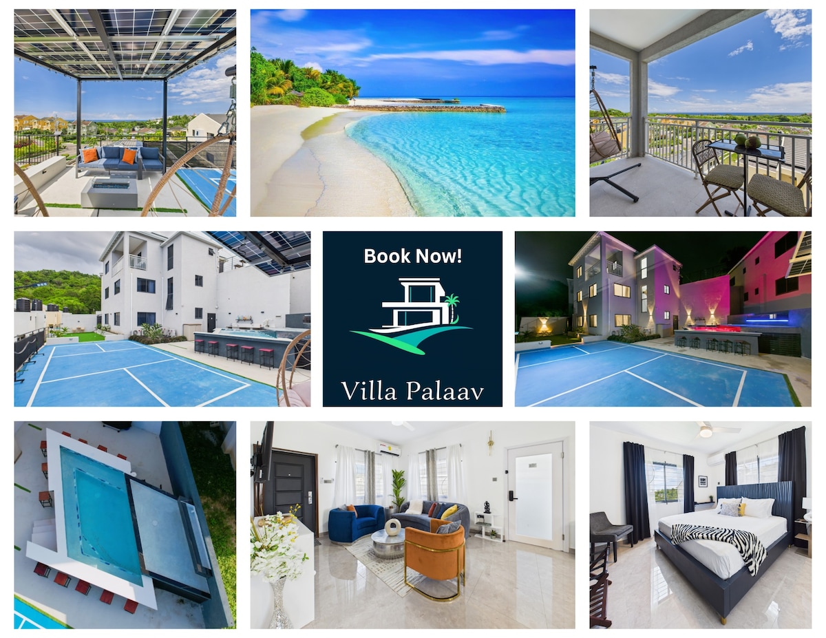 Welcome to Villa Palaav—a sleek, modern contemporary oasis in a private gated community. This eco-luxury 6 bedroom Villa features 3 spacious two-bedroom apartment style King suites with their own private kitchens, with 1-2 bathrooms, and open concept living areas. Soak in breathtaking ocean views from 5 of 6 bedrooms, balconies, and sun decks. Enjoy a private pool, pickleball court, billiards room, and mini golf. Sustainable design includes solar power, rainwater harvesting, and smart cooling.