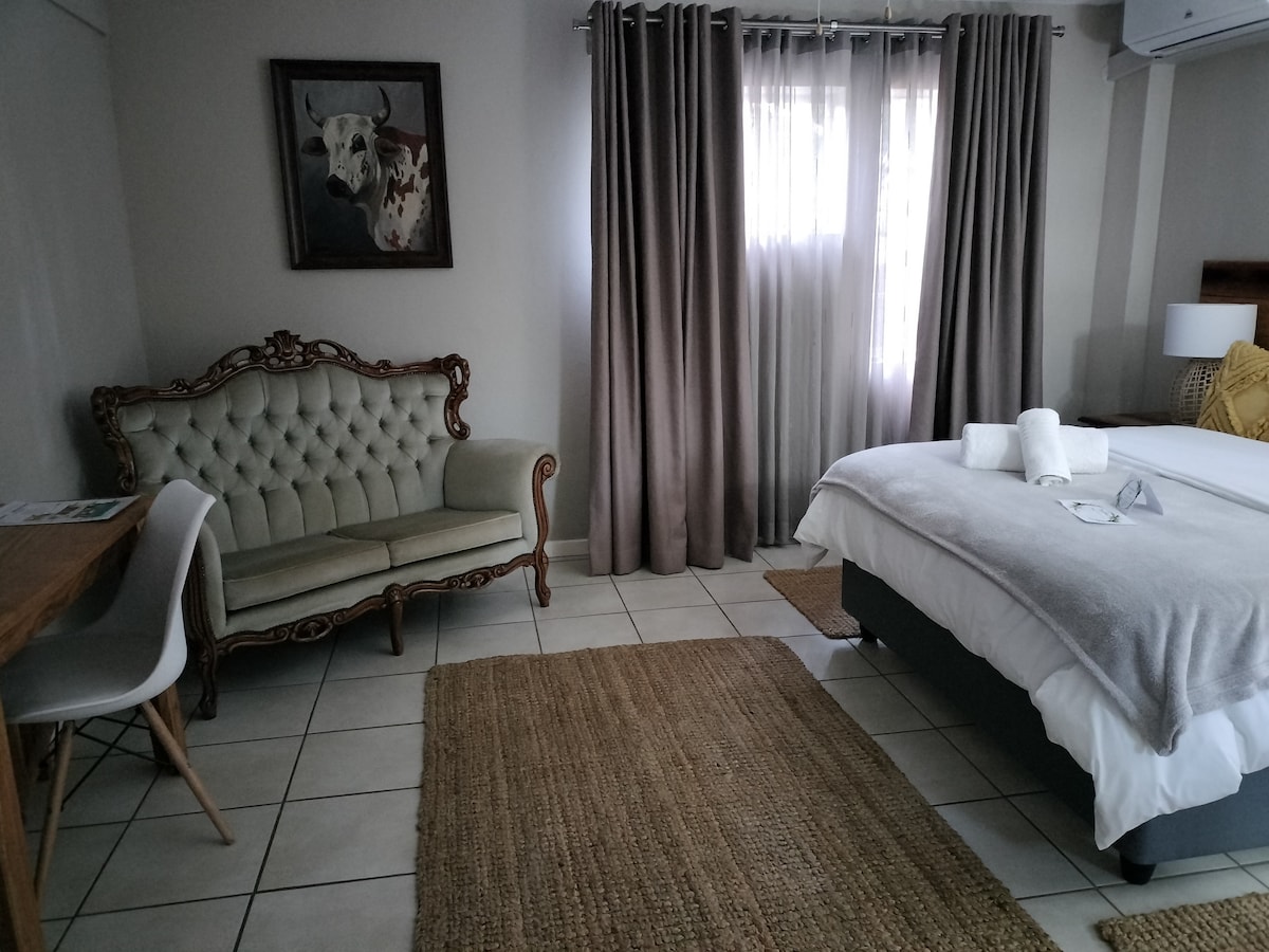 Situated just outside Tzaneen along the R71, this beautifully put together unit feels spacious and comfortably kitted out. On route to the Kruger Park. Farm walks available. Large smart TV offering Netflix. The lush and shady private garden, is fenced off & features a braai & outdoor eating area. The garden is lit up in the evening, creating a perfect spot to enjoy meals and relax. Pool & entertainment area available in designated hours. Pre-ordered breakfasts & dinners are available.