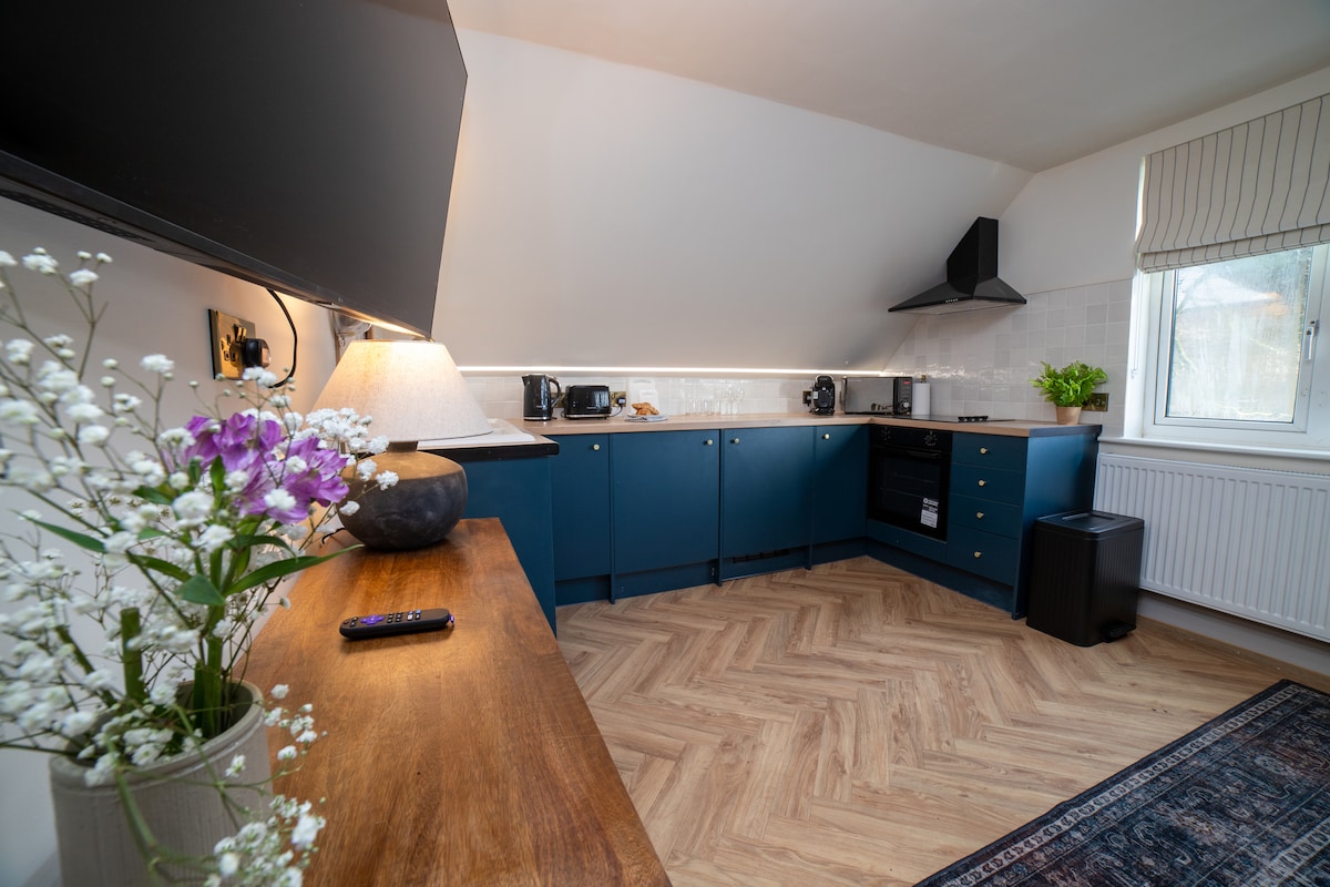 A stylish self contained studio apartment with plenty of private off road parking, in the beautiful village of Coleorton. With open plan kitchen and living area equipped to cater for up to 4 guests. There is one king size bed and a double sofa bed. If you require the sofa bed for one night ONLY please supply your own bedding/towels for it. More than one night sofa bed bedding/towels will be provided. With idyllic countryside surroundings, this new build is perfect for either business or leisure.