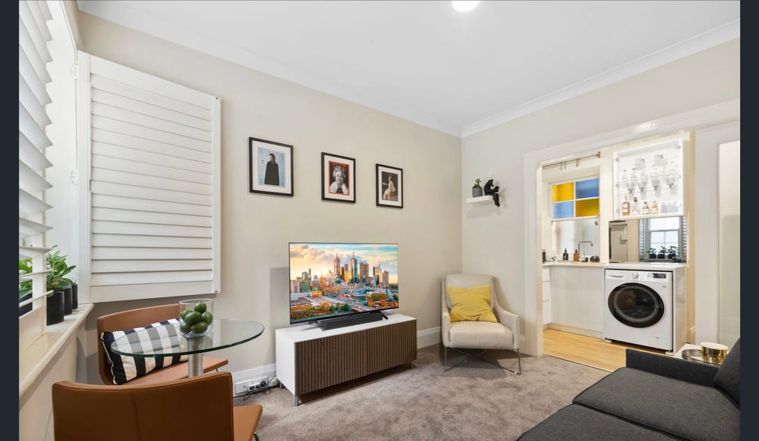 Art Deco studio apartment meticulously restored by a woman builder in the heart of eclectic and energetic Kings Cross. Renovated in keeping with the style and design of the era. Peaceful and quiet inside, yet so close to great cafes and restaurants just metres away. The bathroom is stunning to be in with a large soaking bath and rain head shower. Sleeping Duck hybrid queen bed provides you with an excellent sleep. A modern kitchen with all Miele appliances. It’s small but has it all!!