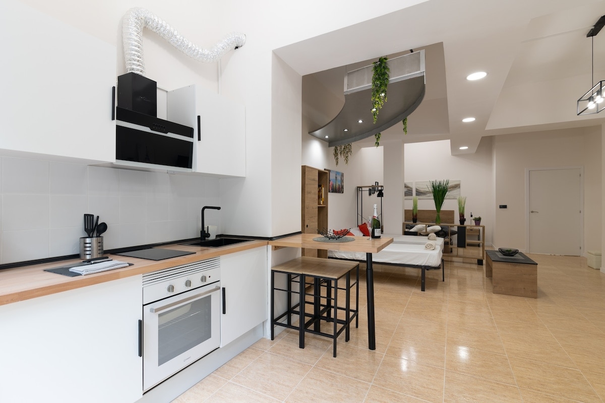 Apartamento de alquiler temporal, estancia mínima de 11 días. Bright, completely refurbished post-industrial open space in a historic residential district, 7 min walk from beach and 10 min from downtown by public transport. Comfort, convenience and design make it a prime choice for a memorable stay in Valencia.