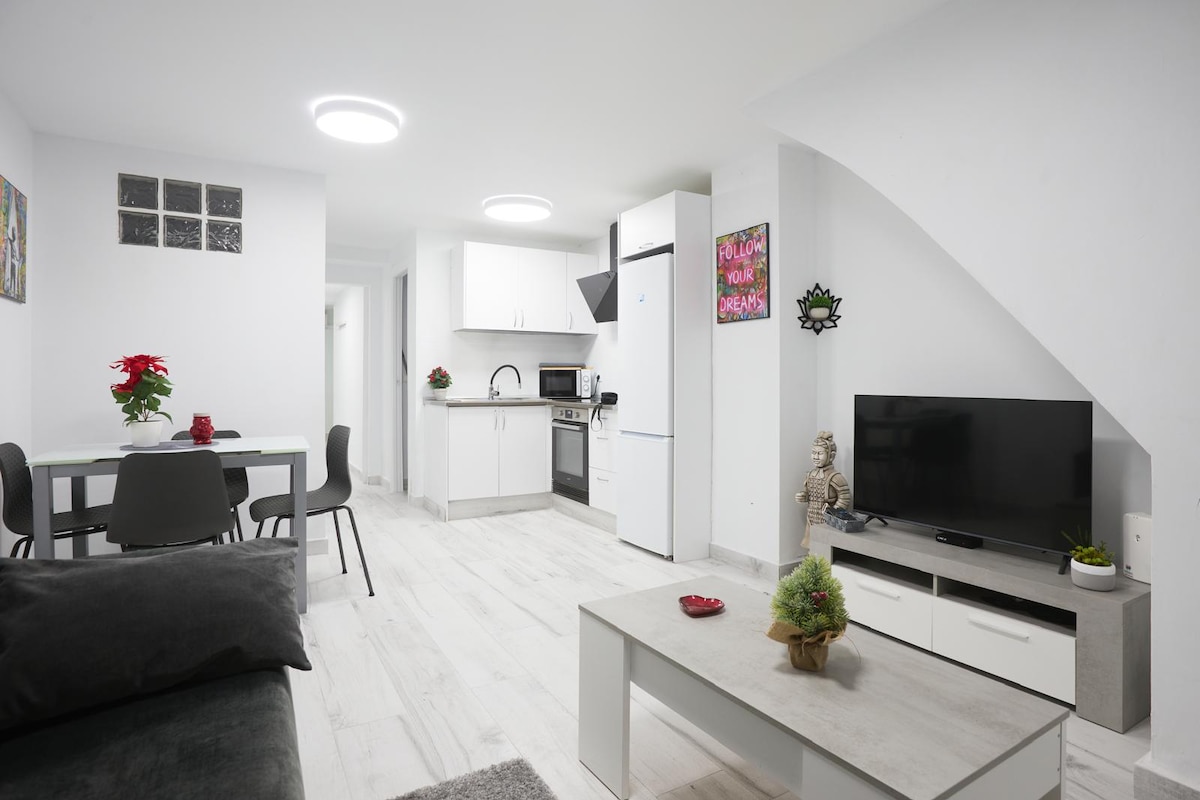 Autocheck-in for a hassle-free arrival 🔑 Jacuzzi on the large terrace to relax 🛁🌅 2 comfortable Queen beds + sofa bed for 2 people 🛏️🛋️ Fully equipped kitchen 🍳🥘 Just 5 minutes walk from the beach 🏖️ Smart TV de 55" con Netflix, Prime Video, etc. para tu entretenimiento 📺 Parking available during the day 🚗 Pet friendly 🐾 Well connected to the city center 🚇 High-speed Wi-Fi 📶