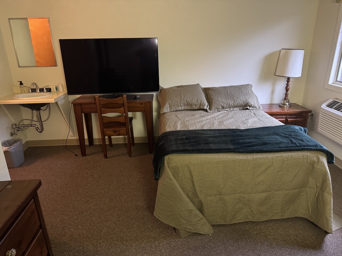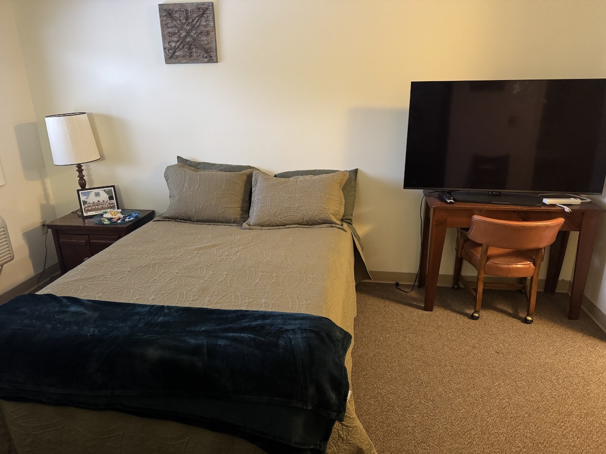 Roscoe's Retreat is a studio loft garage apartment that feels like home. There are steps leading to the second floor with roomy deck and private entrance. Sit on your deck and enjoys beautiful sunset views or stroll through our quaint town. This space has everything you need including a full kitchen, bedroom area, bathroom, Wi-Fi and washer & dryer. Bringing your 4 wheeler to enjoy the hundreds of miles of trails? No problem we have a single garage for off road parking of your ATV.