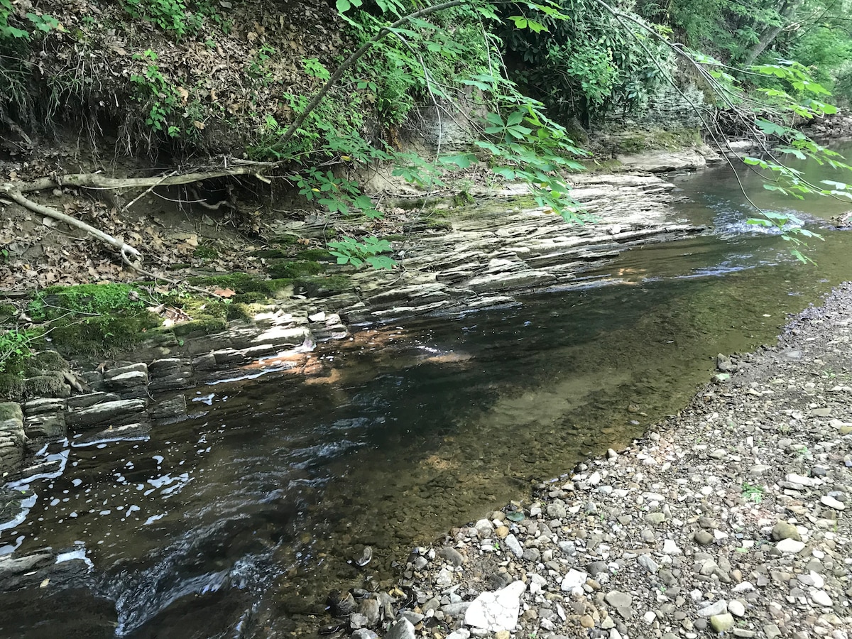 Take it easy at this unique and tranquil getaway. Two decks overlook Tumbling Creek providing plenty of relaxing and entertaining space. We are dog friendly. No cats due to severe allergies. Wi-fi, ROKU TVs. keyless, smart lock entry. Outdoor security cameras. Towels, toiletries and sheets provided. You can also swim and play in the creek. Virginia Creeper Trail, Clinch WMA, The Channels Natural Area Preserve, Hungry Mother State Park nearby. Secluded comfort and privacy is what you'll find.