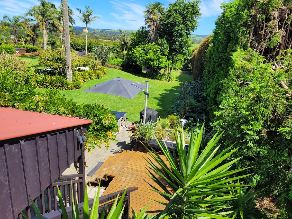 Self contained (attached to rest of house) own external access, bedroom, kitchen/ lounge, bathroom w shower & bath. Breakfast supplies: tea/coffee etc, organic seasonal fruit, homemade scones/jam/preserves. Unlimited WIFI. Within 20 minutes: Kerikeri, markets, chocolate factory, airport, Paihia beaches, Waitangi Treaty grounds, Glow worm stalgmite caves, Kaikohe, thermal hot springs, Okaihau, Puketi kauri forest, oldest NZ houses, 8 mins drive to cycle/walk trail.