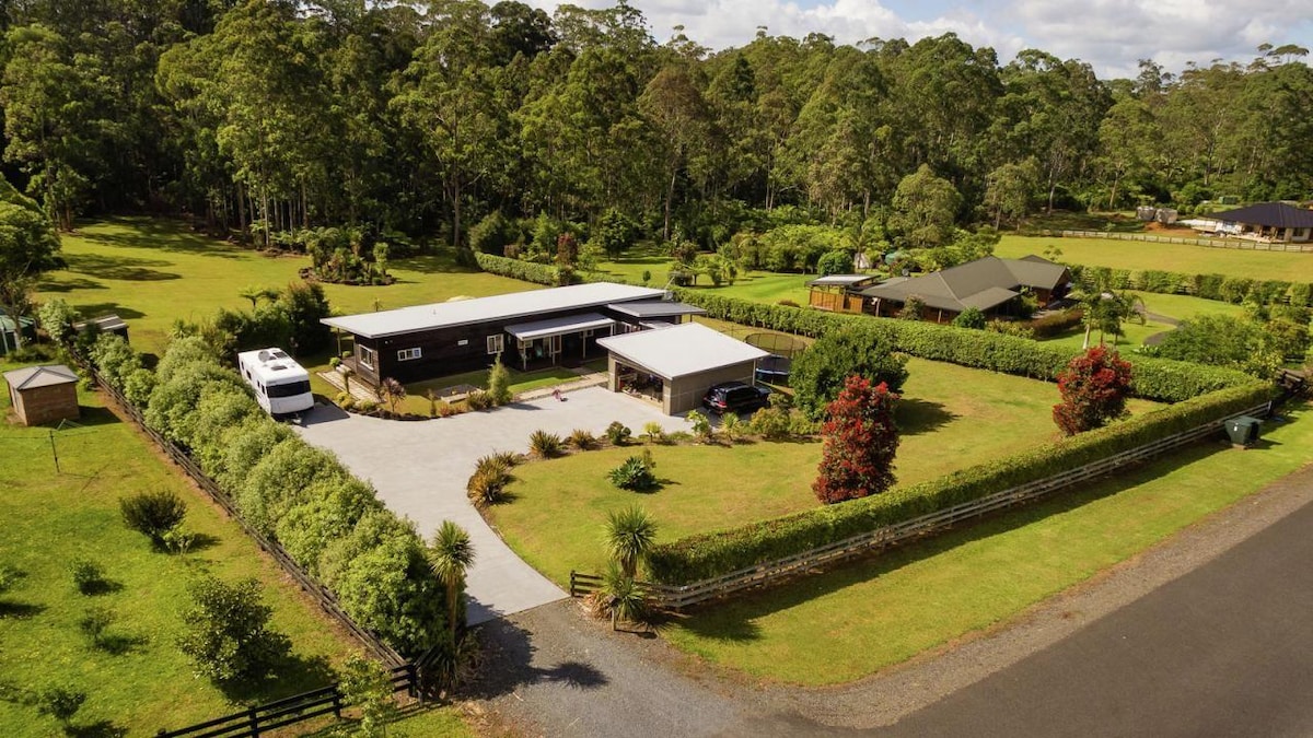 Luxurious Eco House in Rural Paradise Experience modern eco-living with a rustic touch in our off-grid, private retreat. Newly built and self-contained, this haven offers stunning valley and ocean views, making it perfect for relaxation and unwinding. Enjoy the tranquility and beauty of nature in this unique and comfortable getaway.