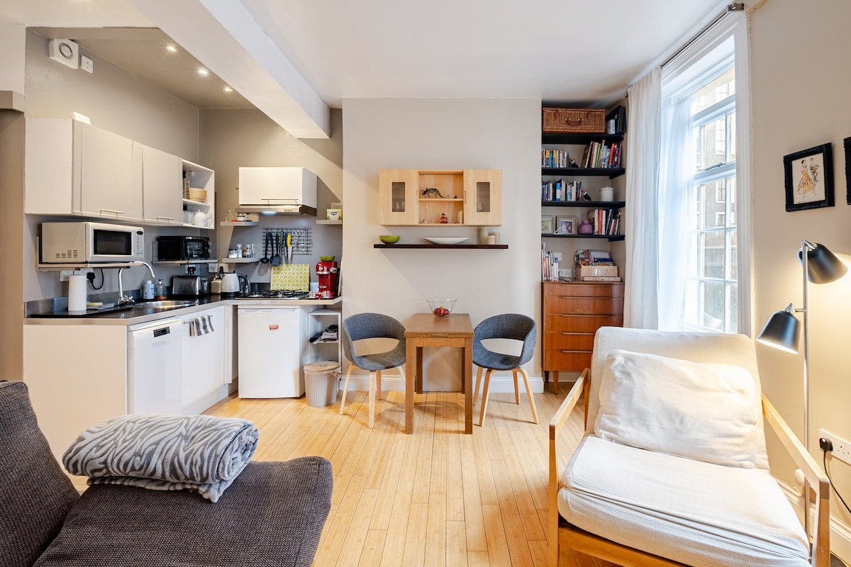 舒适的Fitzrovia单间公寓,位于鹅卵石街上