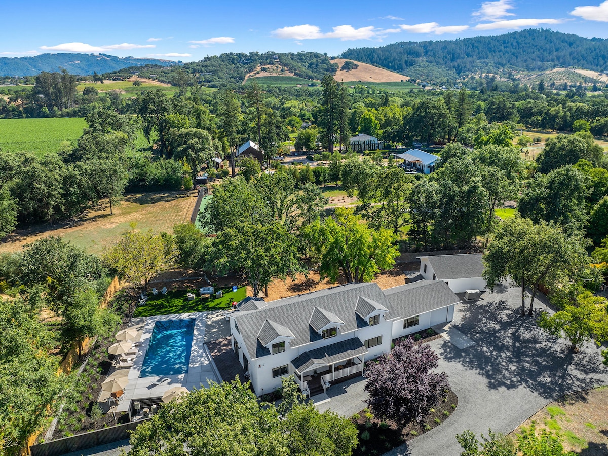 This wine country luxury retreat is a perfect venue for a family or small group escape. Includes a 2 level main house with 3 bedrooms, a large pool, hot tub and separate pool house. Plus wine cellar/game room, work area, family room, gourmet kitchen, five gorgeous stone fireplaces, and a patio kitchen with a gas range & dining area. This beautiful property feels like your own private resort, set on nearly 4 acres including gardens and spectacular views of Mt St Helena.