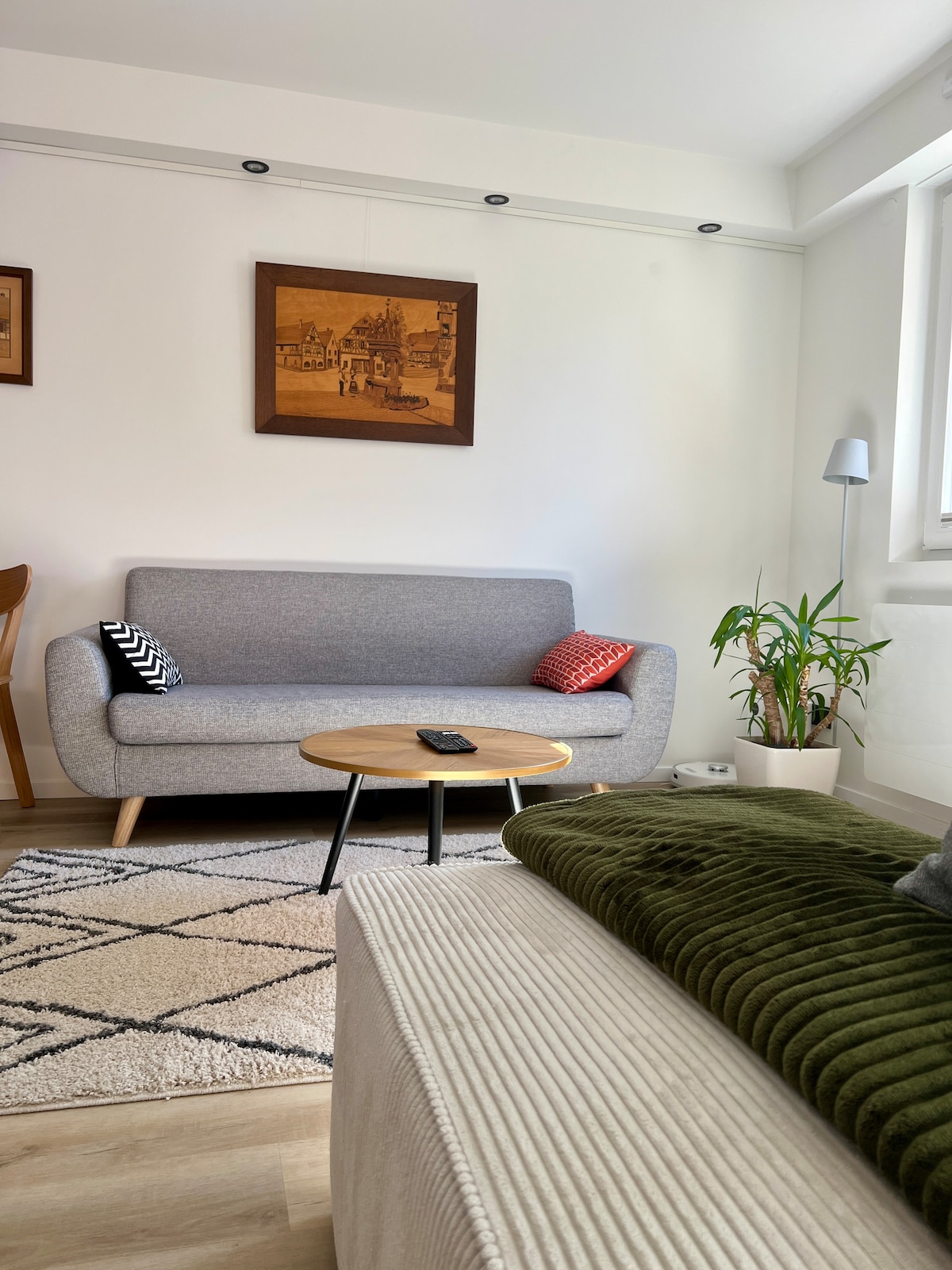Cozy, friendly, and very bright apartment with a bedroom for two people and a spacious living/dining/kitchen area near the EP Park, which is about 4 km away. The modern, newly built bathroom features a large double vanity and a spacious walk-in shower. The fully equipped kitchen also includes spices, oil, and vinegar. The adjoining open-plan living area offers plenty of space in a cozy atmosphere. TV and fast Wi-Fi are included!