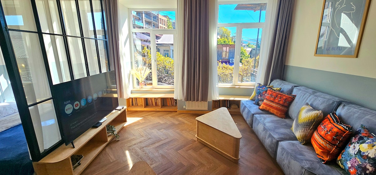 Fully isolated luxury apartment is located in a fundamental Stalin-era building with an elevator in the historical district of the center Tbilisi. 6 min walk to the presidential palace. Window exactly opposite the main object of the city, river, mountain Mtatsminda & tower. A river flows in front of the window and a huge space opens allowing to see all the sights of Tiflis. ♥️♥️♥️ CLICK ON MY PHOTO ONE & ANOTHER TIME & YOU’LL SEE PHOTOS OF THE SECOND OF MY BEAUTIFUL APARTMENT VERY CLOSE