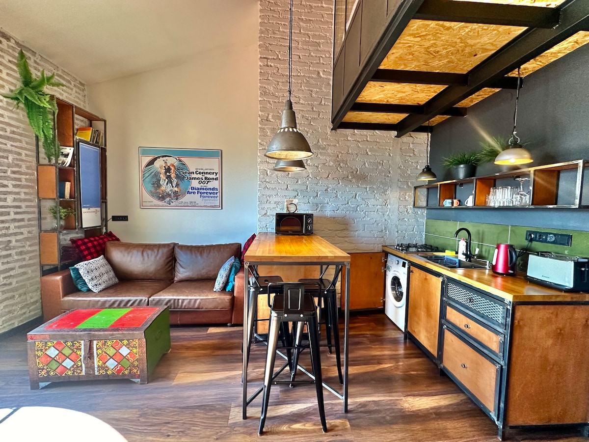 The industrial apartment, built in 1908, is located in the historic old town of Tbilisi, just a ten-minute stroll from Freedom Square. The decor retains the authentic charm of the old town and adds a modern touch to it. The building next door was being renovated for couple of months, but the work has been finished. We had a temporary problem with the central heating (two heaters were not fully heating up) but we solved it. We also purchased an additional electric heater in case of necessity.