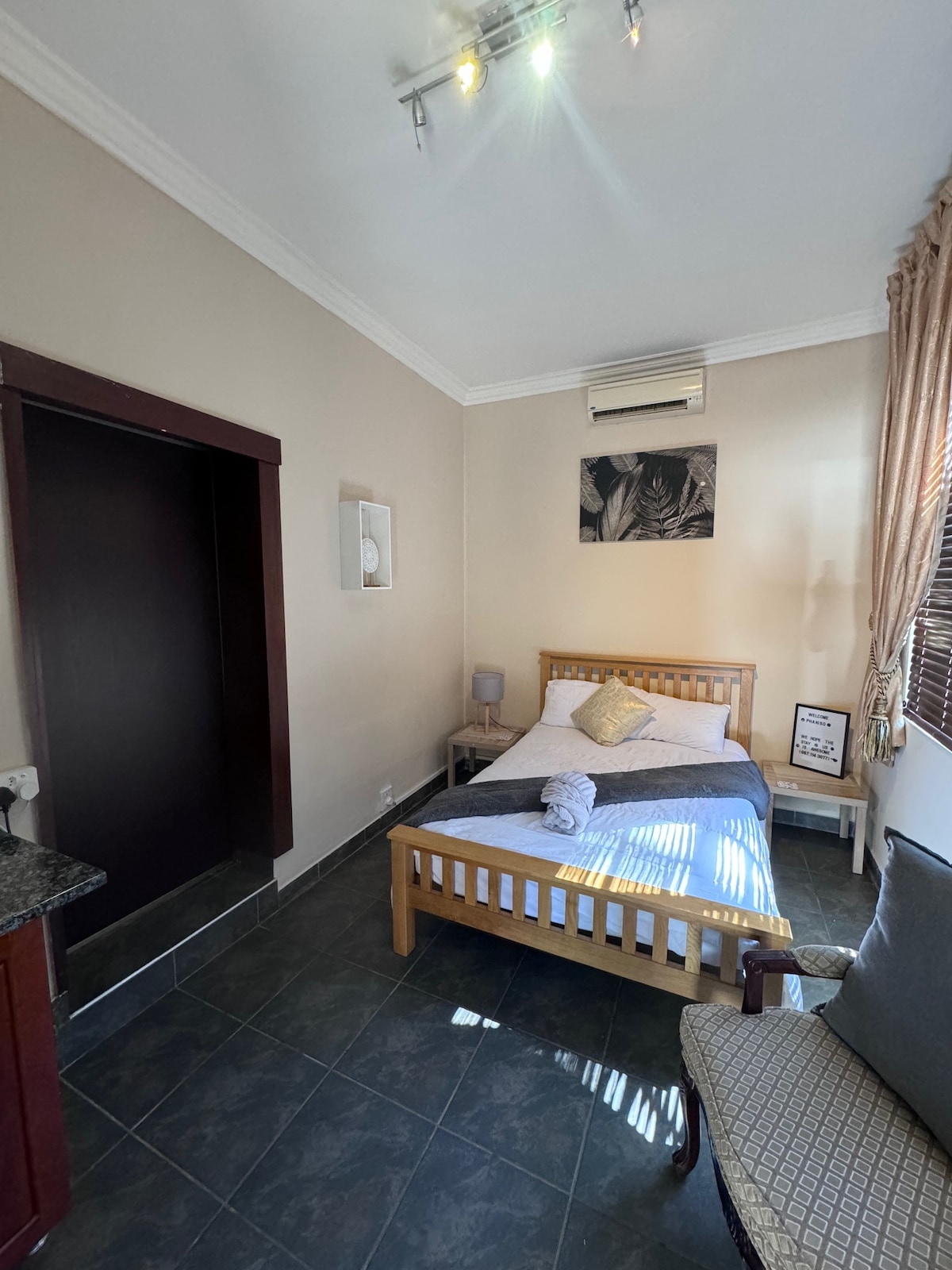 Take it easy at this unique and tranquil getaway. *Cozy Retreat near Sun City Resort and near 7 shopping malls and squares withing 5km radius* 45km from Sun City Resort. Serene space with: - Spacious living area - Fully equipped kitchen - Private bedroom Perfect for couples, families, or travelers seeking relaxation & adventure!