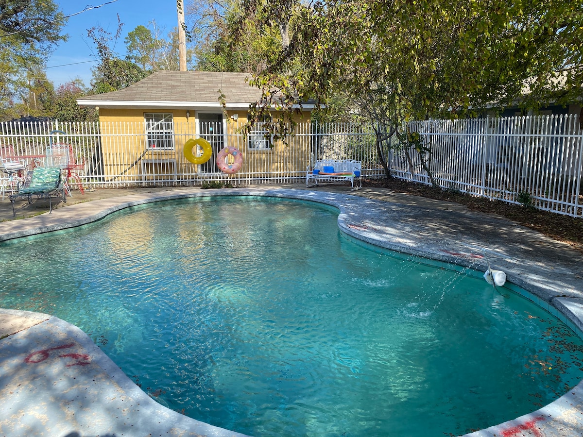 This one of a kind space is conveniently located in a quiet neighborhood within a few minutes of dining, shopping, ULM, Forsythe Park, and many attractions. You will enjoy your cozy 1 bedroom with flat screen TV (Netflix, Hulu, Disney + and other streaming services) and you also have access to a quarter court indoor basketball court & shared indoor pool w retractable roof. The pool area and back patio have seating and feature access to a grill and fire pit.