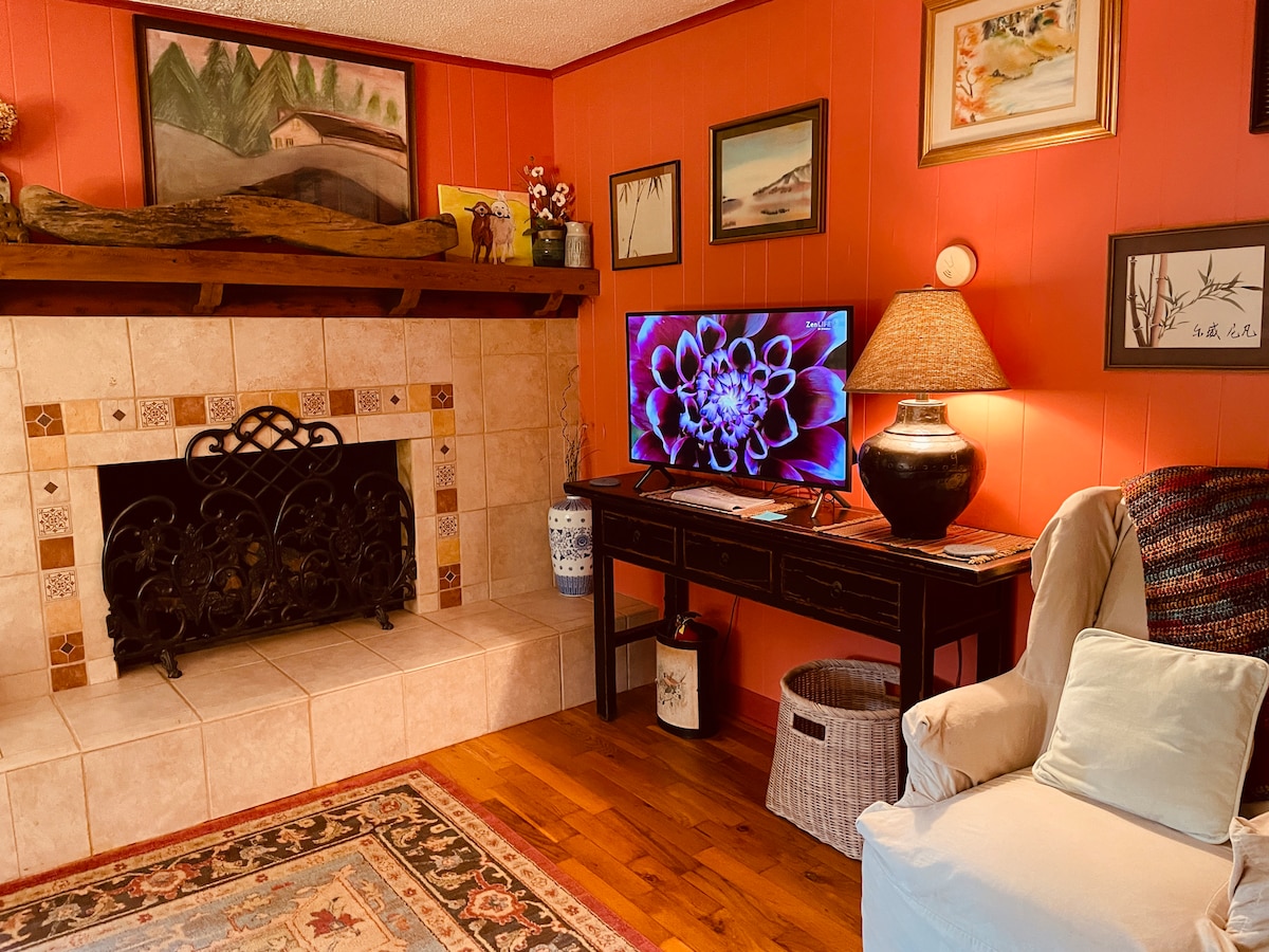 Private Pet friendly Peaceful Spacious Mid Century Modern home 1 King Bedroom 1 Queen Bedroom 1 Full bathtub & shower FAST Wifi Your own workspace Fully equipped kitchen Coffee! Patio w/ grill, umbrella covered seating Lovely garden, field and vista view Outdoors afficionados, writers & artists find a haven Ben and Lori are a husband and wife team who own and directly take care of the property with attention to detail. We welcome you to come and stay at your home away from home!