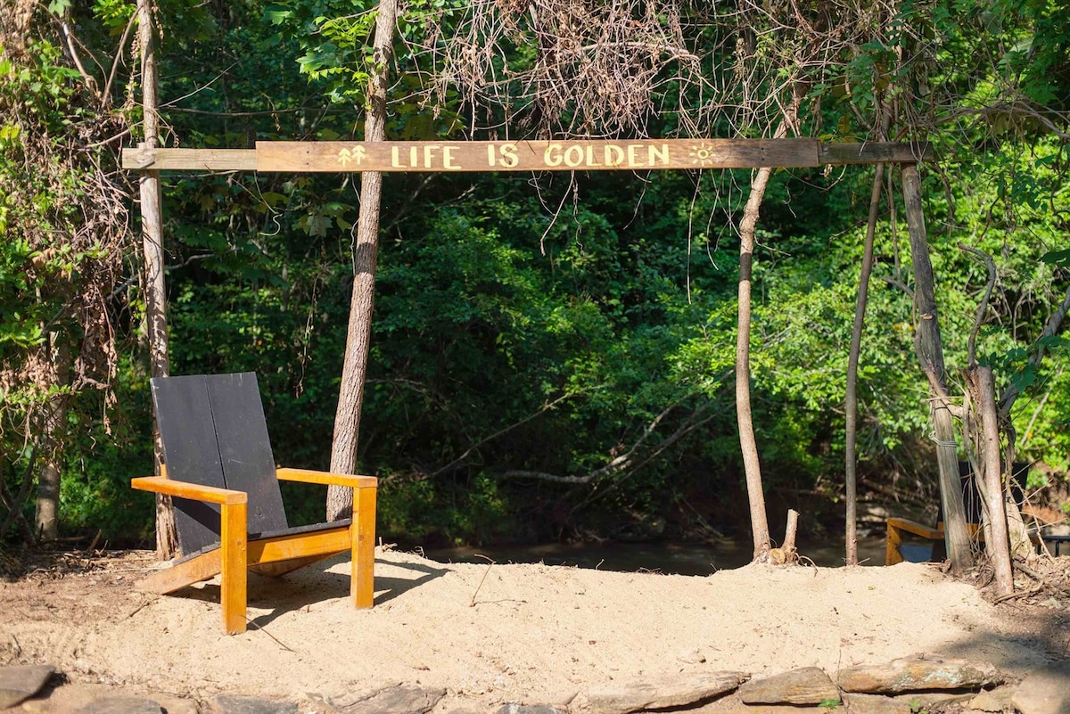 BNB Breeze Presents: The Green Creek Shipyard! Crafted and constructed by three siblings, immense effort and careful deliberation were invested in bringing forth this exceptional shipping container home! This unique and fun stay includes: • Hot Tub • Barrel Sauna • Private Pond w/ Seating • Cozy Fire Pit w/ String Lights (firewood provided) • Outdoor Grill • 26' Deck w/ Lounge Chairs + Egg Chairs • Yard Games: Including Corn Hole + Ring Toss • Coffee Bar: Jura Espresso Automatic Machine