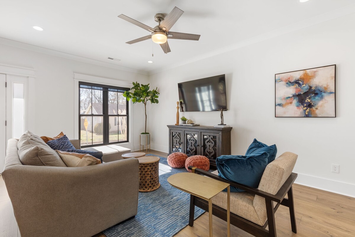 Welcome to the Tall & Skinny, a stylish 4-story retreat with its very own rooftop hangout, just a 5-minute stroll (only 3 blocks) from the Boro’s lively downtown square. Just 2.5 miles off I-24 and only 40 minutes from downtown Nashville, this vertical gem is as convenient as it is unique. Inside you’ll find three themed bedrooms each with its own vibe: 🎀 The Dolly: a little glam, a little southern sparkle 🍸 The Gatsby: moody, luxe, and vintage 🌊 The Nantucket: light, airy, and coastal calm