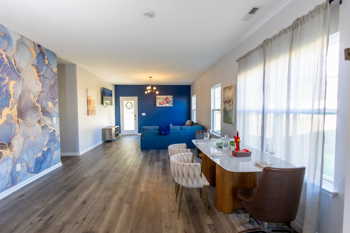 Enjoy your stay with comfort and convenience! Located in a quiet neighborhood, conveniently minutes away from 840 and I-24, this family-friendly 3 Bedroom home has 2.5 Bathrooms, Office Space, Dedicated Play Area and a Fenced-In Backyard. It’s the perfect spot to call home as you explore the area. Rooms are thoughtfully curated to various musical genres. Babies or toddlers? We have a pack n play, high chair, toddler cutlery, etc. available for your use. 42" crate available for furry friends!
